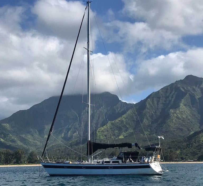 Blackfin is a 1981 Norseman 447, a classic Bob Perry design and time-tested "blue water" design that has been extensively refitted and sailed across the Pacific, Southern Ocean edges, and Southeast Asia. She is equipped and maintained with safety, reliability and comfort as top priorities, and is well suited for extended offshore passages.