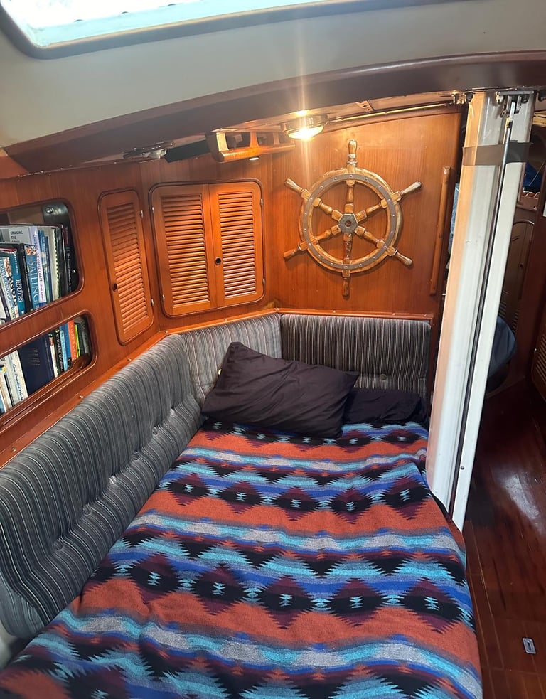 The Norseman 447 is a truly special yacht, designed by Robert Perry, one of the finest offshore cruising yacht designers of his era. Perry reportedly dubbed the Norseman 447 his “masterpiece,” and it’s easy to see why. Boats of this era were built with a heavy fiberglass layup, creating a solid, long-lasting hull, while the interior showcases exquisite teak joinery that reflects a level of craftsmanship rarely seen in modern production yachts. Her striking lines draw admiration in nearly every anchorage or marina, and she delivers exceptional handling and balance offshore.